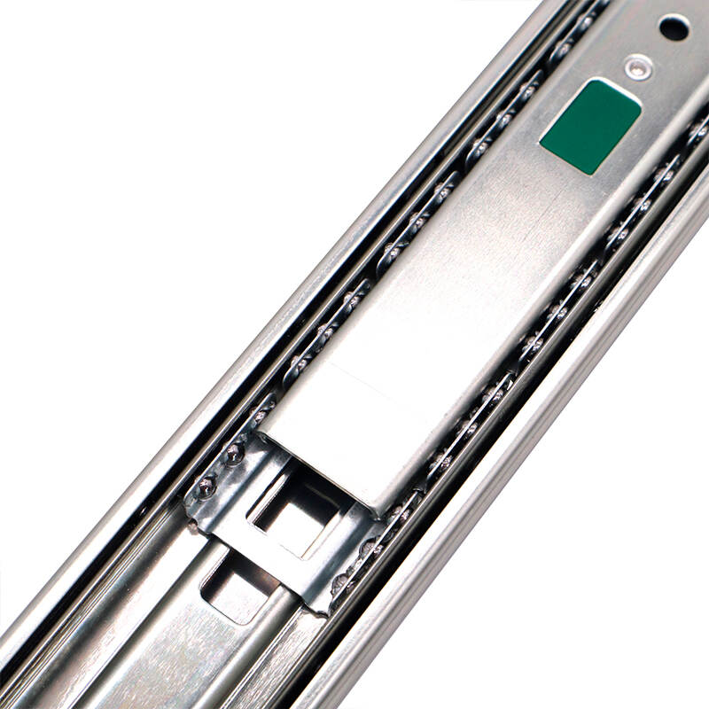 Two sets of solid steel balls are used inside the ball bearing drawer slide rail to ensure smooth opening and closing of the slide rail. After testing, the number of smooth openings and closing of the slide rail has reached more than 100,000 times.